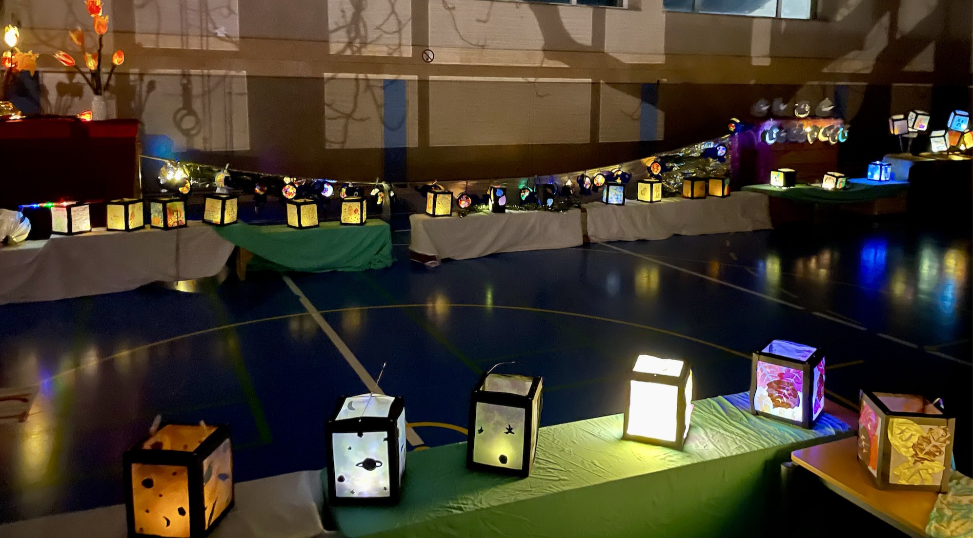 In der Turnhalle erwartete die Besucherinnen und Besucher eine farbenfrohe Ausstellung der selbstgebastelten Laternen. Die leuchtenden Kunstwerke sorgten für eine wunderbare Atmosphäre und zeigten die Kreativität unserer Schülerinnen und Schüler.