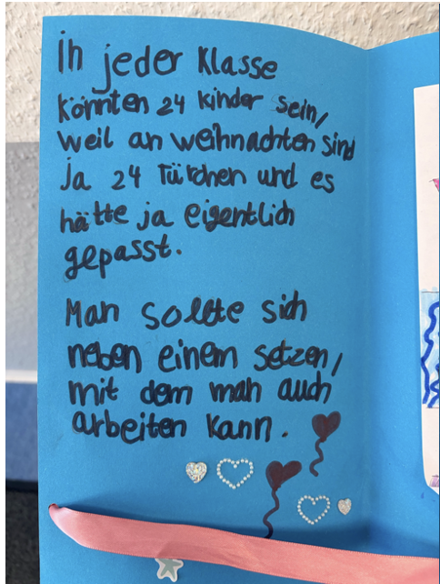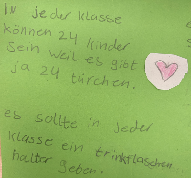 Die vielen Ideen, Gedanken und Wünsche der Kinder waren eine wertvolle Grundlage für die Gespräche am pädagogischen Ganztag. Deshalb möchten wir ihre Beiträge an dieser Stelle noch einmal besonders würdigen und veröffentlichen.
