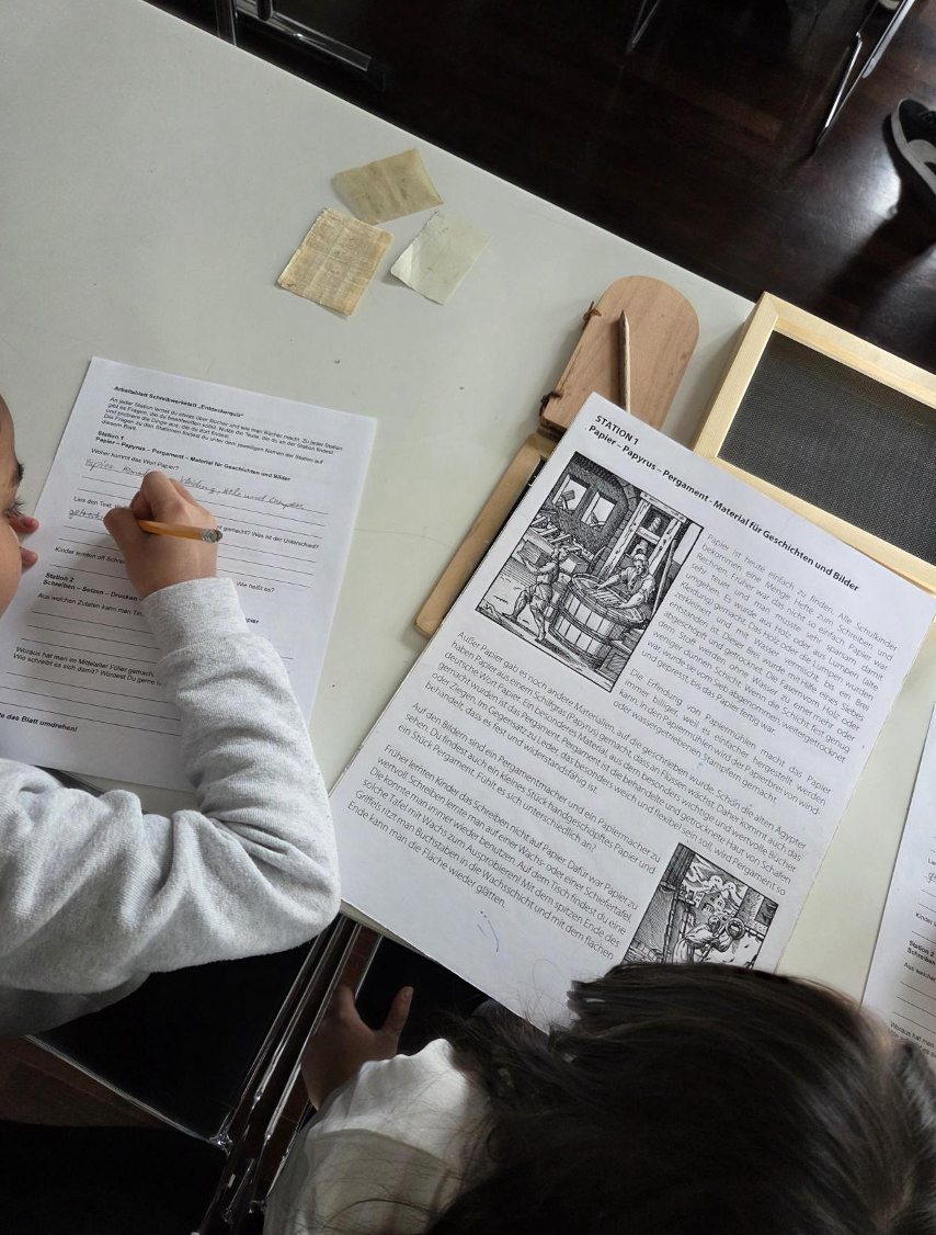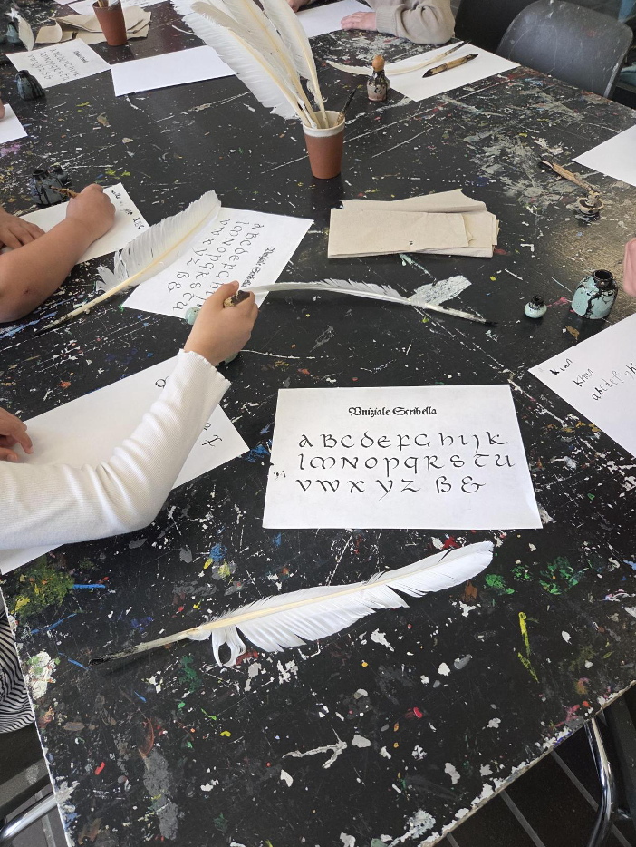 Nachdem sich alle Klassen der Stufe 3 mit den Themen Siegburg und Schule früher beschäftigten, machten sie einen Ausflug ins Stadtmuseum Siegburg. Dort besuchten sie die Schreibwerkstatt und durften selbst herausfinden, wie man früher mit Feder, Bambusstock und Tintenfässchen geschrieben hat. Sie lernten Johannes Gutenberg und die Erfindung des Buchdrucks, Pergament und Papyrus, sowie die Teile eines Buches kennen.
