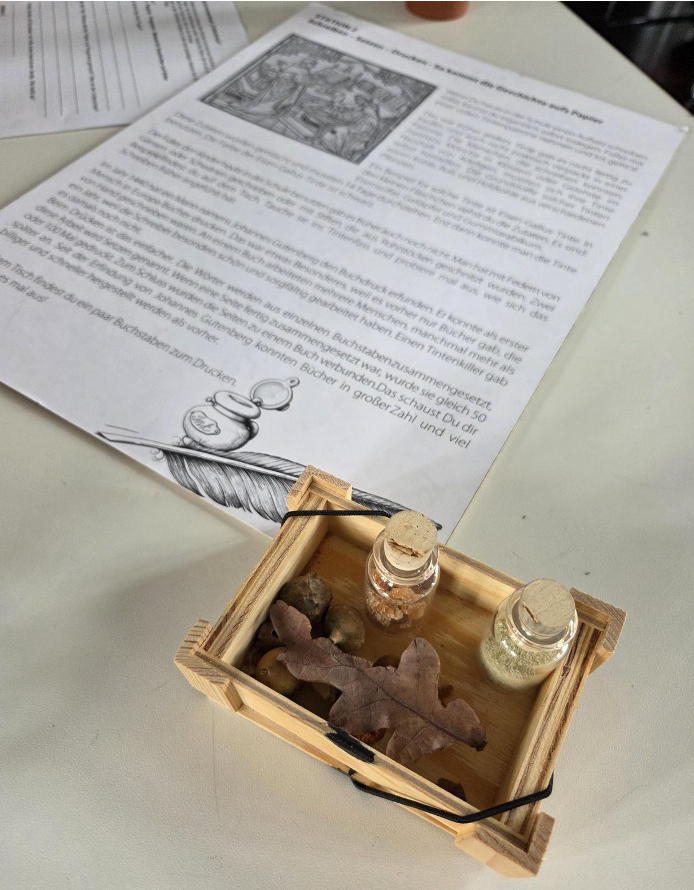 Als Erinnerung hat jedes Kind einen eigenen Brief auf Briefpapier mit Feder und Tinte geschrieben und diesen am Ende gesiegelt. Jetzt muss er nur noch an den Empfänger übergeben werden.